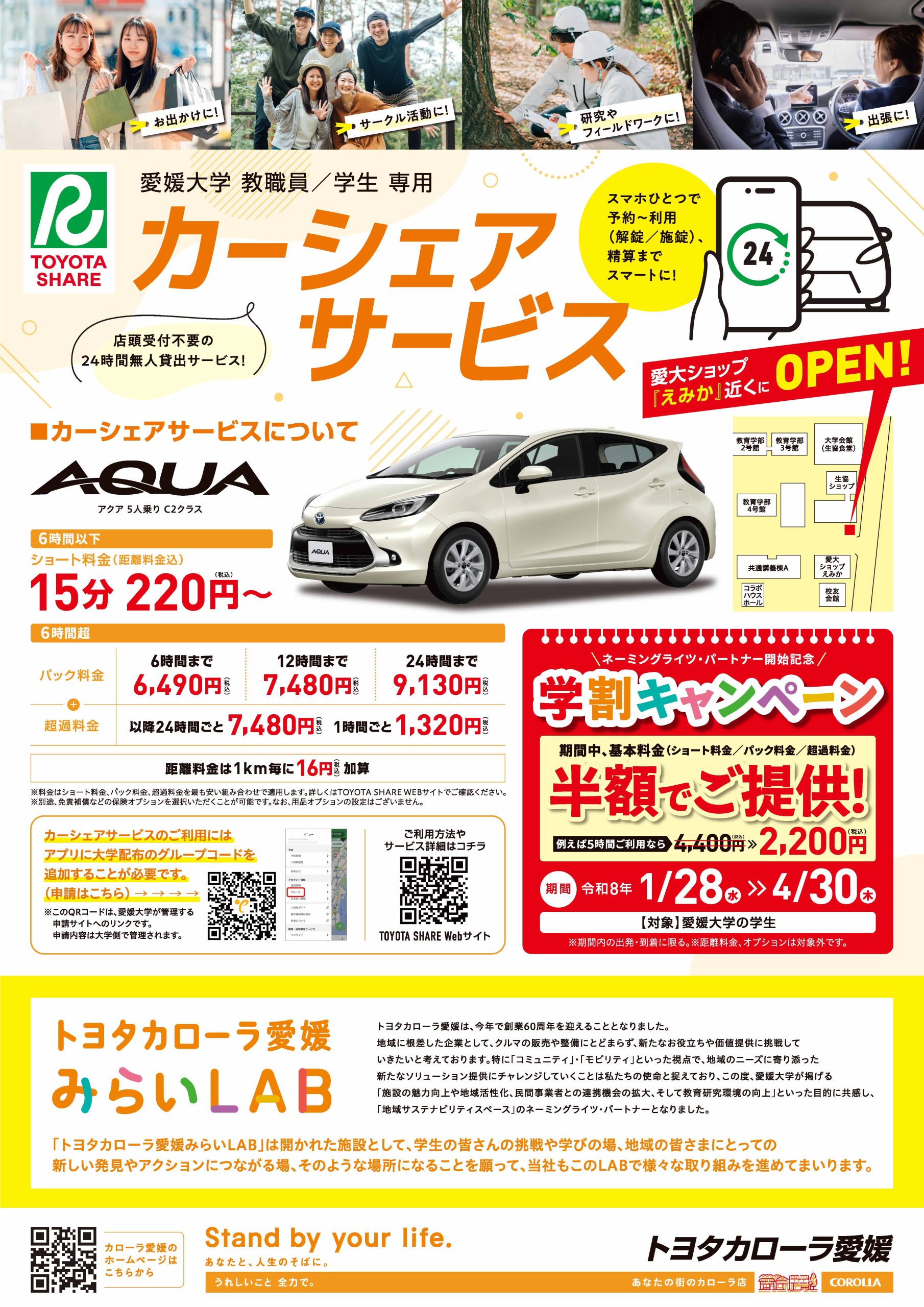 ご利用料金 | トヨタシェア - 設置場所:城北キャンパス経理調達課前