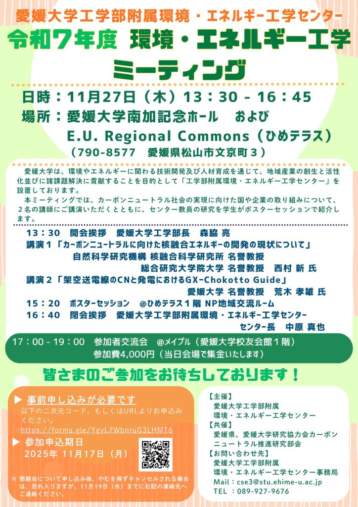 【参加者募集】令和7年度環境・エネルギー工学ミーティング