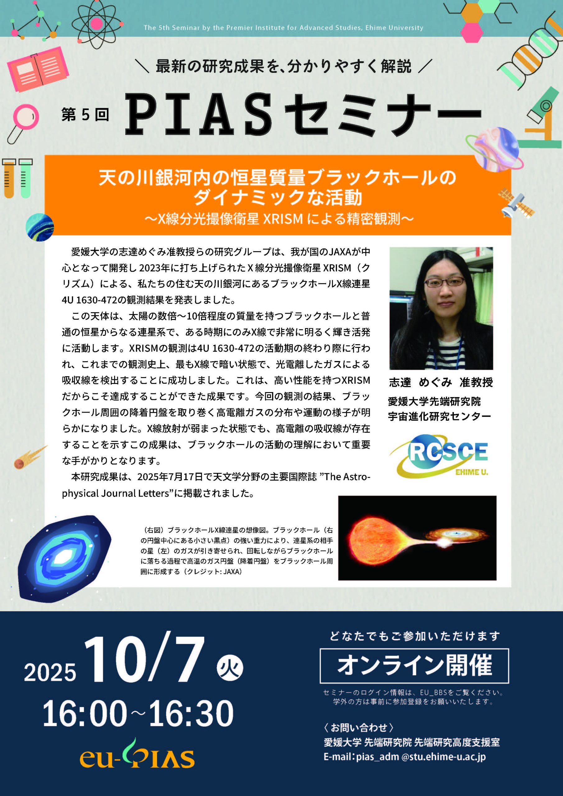 愛媛大学先端研究院(PIAS)では、令和7年10月7日(火)に、標記セミナーを開催します。
