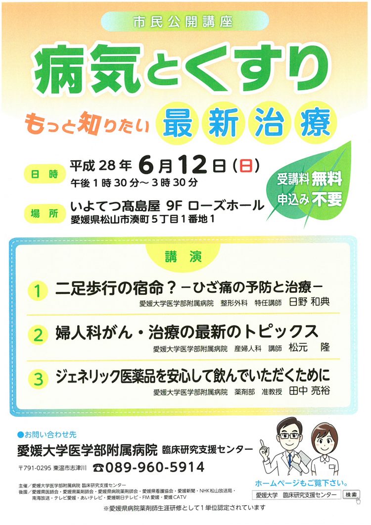 平成28年6月12日(日)、市民公開講座「病気と薬 もっと知りたい最新治療」を開催します。