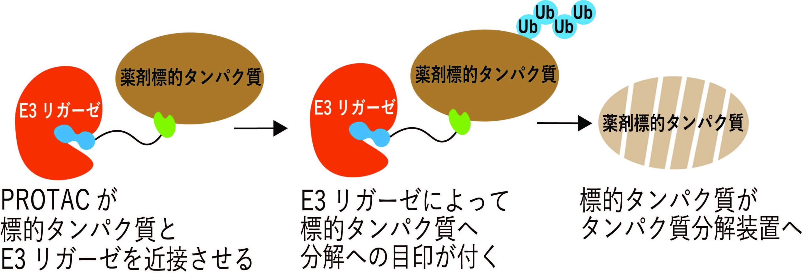 愛媛大学先端研究院プロテオサイエンスセンターの山田航大特別研究員、山中聡士特定助教、澤崎達也教授、徳島大学の小迫英尊教授、東北大学の山越博幸助教、岩渕好治教授らの研究グループは、新しいタイプの薬「PROTAC(プロタック)」が細胞の中でどのように働くのかを調べる技術を開発しました。