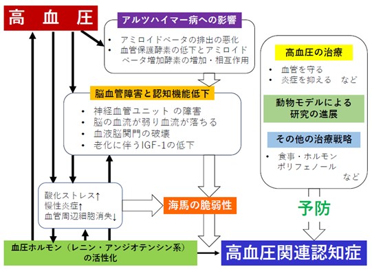 - 中年期の高血圧が高齢期の認知症発症と関連することが疫学的に示されている中、その背景にある発症機序を基礎研究の観点から体系的にまとめた論文を作成し、日本高血圧学会の声明文として公表しました。