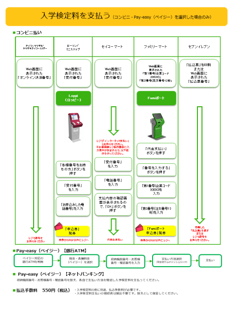 Payment can be made by credit card, convenience store, or Pay-easy (ATMs and Internet banking at participating financial institutions).