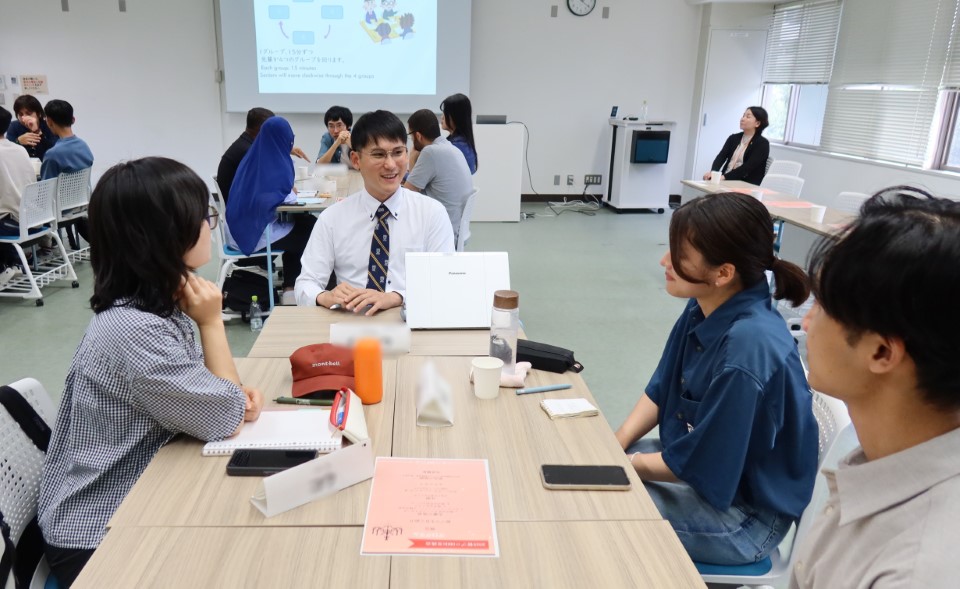 On Saturday, October 18, 2025, Ehime University held an “Exchange Program between Alumni and Current Students” at its Johoku Campus. As part of the career education class “Career Vision Formation for International and Japanese Students Together,” four alumni who are active as foreign employees at companies in Ehime Prefecture were invited as lecturers to interact with 14 current students participating in the program. The lecturers for the day were Mr. Jose Rodriguez Neto of Canaan Georesearch Corporation, Mr. Ryu Kinyo of Daio Engineering Corporation, Ms. Michele Marie of Hikari Corporation, and Mr. Lim Jiu of Matsuyama Bark Corporation.