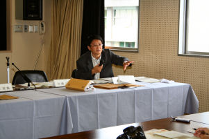 - 資料を前に解説するシン教授