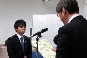 平成26年8月31日(日)〜9月2日(火)、大阪大学で開催された2014年映像情報メディア学会の年次大会で、大学院理工学研究科電子情報工学専攻情報工学コース1年の土生谷隆弘さんが研究発表を行い、12月17日付けで学生優秀発表賞を受賞しました。本賞は、映像情報メディア学会の年次大会で発表を行った学生の中から選出されるものです。今回は、学生が発表した55件に対し、5件が選出されました。