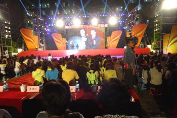 開演は、学生らによる太鼓パフォーマンスから始まりました。その後、学生や卒業生らによるダンスや歌が次々に披露され、広場に集まった数千人の参加者を大いに魅了しました。