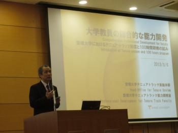 本学では、平成25年度4月より独自のテニュア・トラック制度を導入することが決まっており、この説明会は、制度の円滑運用に向け、対象教員のほか、関係教職員向けに開催したもので、100人の参加者がありました。