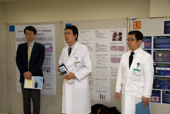 この発表会は昨年度より始められたもので、主に医学系研究科医学専攻の大学院3年生が、研究成果をポスター形式で発表し、他の院生や学部学生、教員にその成果を知ってもらい、学内共同研究を促進するとともに、研究の進捗状況を確認することで、研究成果の質と量の向上を図るものです。