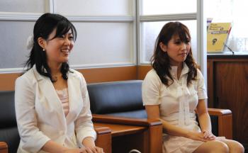 平成22年6月24日(木)、「松山マドンナ大使2010」に選ばれた工学部4回生の手塚真未さんと法文学部3回生の門屋伶奈さんが、報告のため柳澤康信学長を訪問しました。