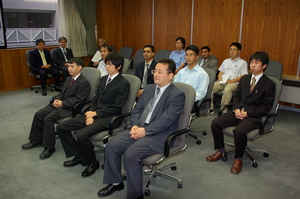 平成19年10月1日(月)、工学部会議室で、平成19年度愛媛大学大学院理工学研究科10月入学入学式を行いました。今回の入学生は、10月に入学を許可された博士後期課程8人、博士前期課程4人の合計12人です。
