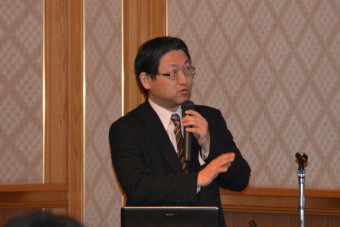 総会終了後、特別講演として、厚生労働省がん・疾病対策課の佐々木健課長から、「医療保険施策の動向〜がん・疾病対策を中心に〜 〜平成28年診療報酬 改定の概要〜」と題した講演がありました。続いて、医学部麻酔・周術期学の萬家俊博教授から「手術医療の安全向上を目指した手術映像記録管理システム」と 題し、2016年度から当院手術部で導入する手術映像記録システムの説明がありました。その後、医学部老年・神経・総合診療内科学の大八木保政教授から、 「認知症の分子病態と治療法の開発」と題し、アルツハイマー病の最新の治療法について説明がありました。最後に、医学部肝胆膵・乳腺外科学の髙田泰次教授 が新専門医制度に対応した本学専門研修プログラムについて説明しました。