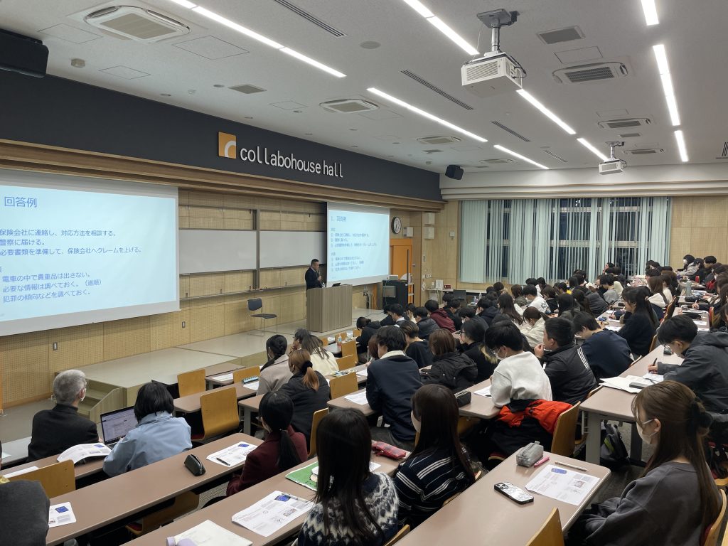 令和8年1月27日(火)、令和7年度海外留学・語学研修に関わる危機管理セミナーをコラボハウスホールで開催し、留学・研修等で海外に渡航予定の本学、松山大学、愛媛県立医療技術大学、人間環境大学、聖カタリナ大学の学生・教職員等あわせて131人が参加しました。