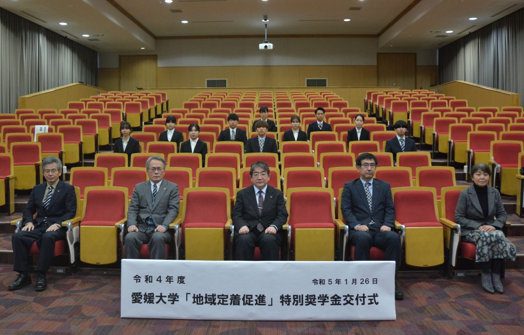 令和5年1月26日(木)および2月21日(火)に、令和4年度愛媛大学「地域定着促進」特別奨学金交付式を開催しました。