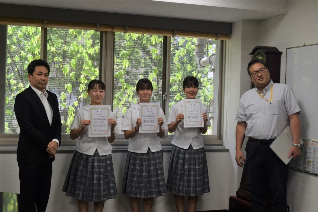 令和5年7月24日(月)、農学部長室において、「令和5年度全国安全週間 樽味事業場標語」の「優秀賞」受賞者への表彰式を行いました。これは、厚生労働省及び中央労働災害防止協会主唱の「令和5年度全国安全週間(令和5年7月1日~7日)」に合わせて、樽味事業場においても、安全意識の向上を促進するため、同事業場の教職員及び学生を対象に、労働災害のない安全で快適な環境づくりを呼びかける標語の募集を行ったことによるものです。