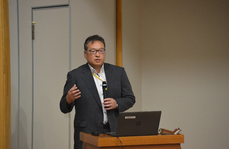 また、第2部では、本年7月に設置した、イノベーション創出院先端農業R&Dセンターの設置記念同時キックオフが行われ、有馬誠一センター長の開会挨拶に続き、大和フード&アグリ株式会社の久枝和昇社長が「植物工場のこれまでと今後」と題した、招待講演を行いました。