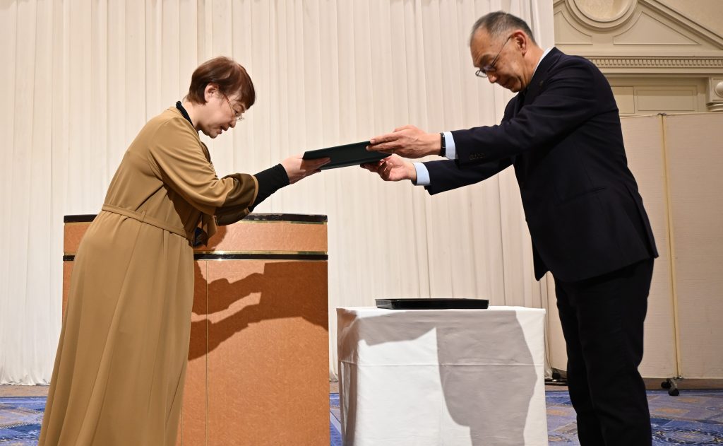 今年度「愛媛大学地域創生イノベーター(東予)」の称号が付与された18人の皆さんには、より一層、地域の課題解決や地域活性化に貢献することを期待しています。