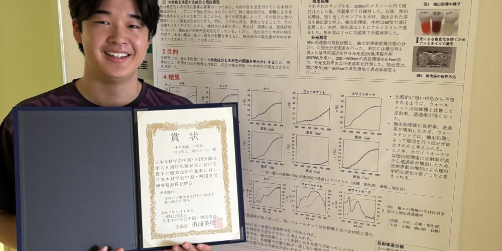 農学部の学生や農学研究科の教員らが、日本木材学会中国・四国支部第36回研究発表会において「日本木材学会中国・四国支部研究発表賞」を受賞しました【9月19日(金)】