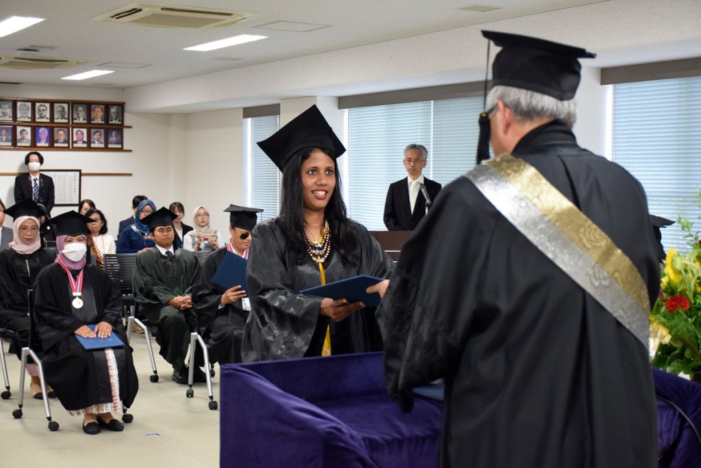 式典では、留学生7人(インドネシア、バングラデシュ、ネパール)を含む課程博士8人に博士の学位が授与されました。