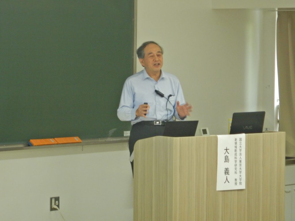 第2部は、国立大学法人東京大学大学院新領域創成科学研究科の大島義人教授が登壇し、「実験研究現場の安全のために」と題して講演を行いました。実験研究現場における自律的リスク管理は、これから起こるかもしれない危なさ(リスク)を定量的に見積り、それを下げるための対策を立てること(リスクアセスメント)が大事であり、研究活動には必ずリスクを伴うことを知り、自己の能力を適正に評価(見積)し、保護具の着用などの事前の備え(対策)をして、それを正しく扱うことであると述べられました。