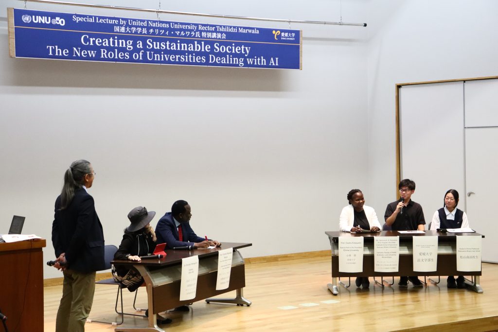 令和7年10月9日(木)、国際連合大学(United Nations University, UNU/本部:東京)のチリツィ・マルワラ学長(国連事務次長兼務)が愛媛大学を訪問され、仁科弘重学長への表敬訪問及び特別講演を行いました。