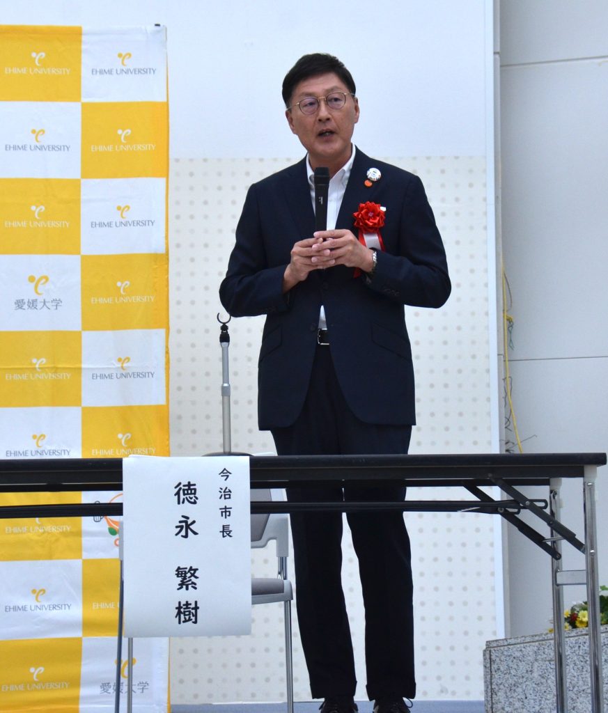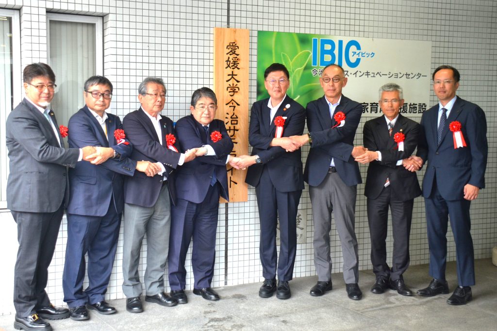 これを記念し、令和7年10月3日(金)、今治地域地場産業振興センターにて「愛媛大学今治サテライト」の看板除幕式を開催しました。