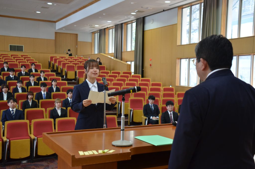 その後、理学部4年生の安原芽生さんから「今後も学びに対する積極的な姿勢を維持し、常に自ら学び、考え、実践できる、新たな価値を生み出す力を持った人材として、努力を重ねて、地域社会に貢献してまいります」と謝辞がありました。
