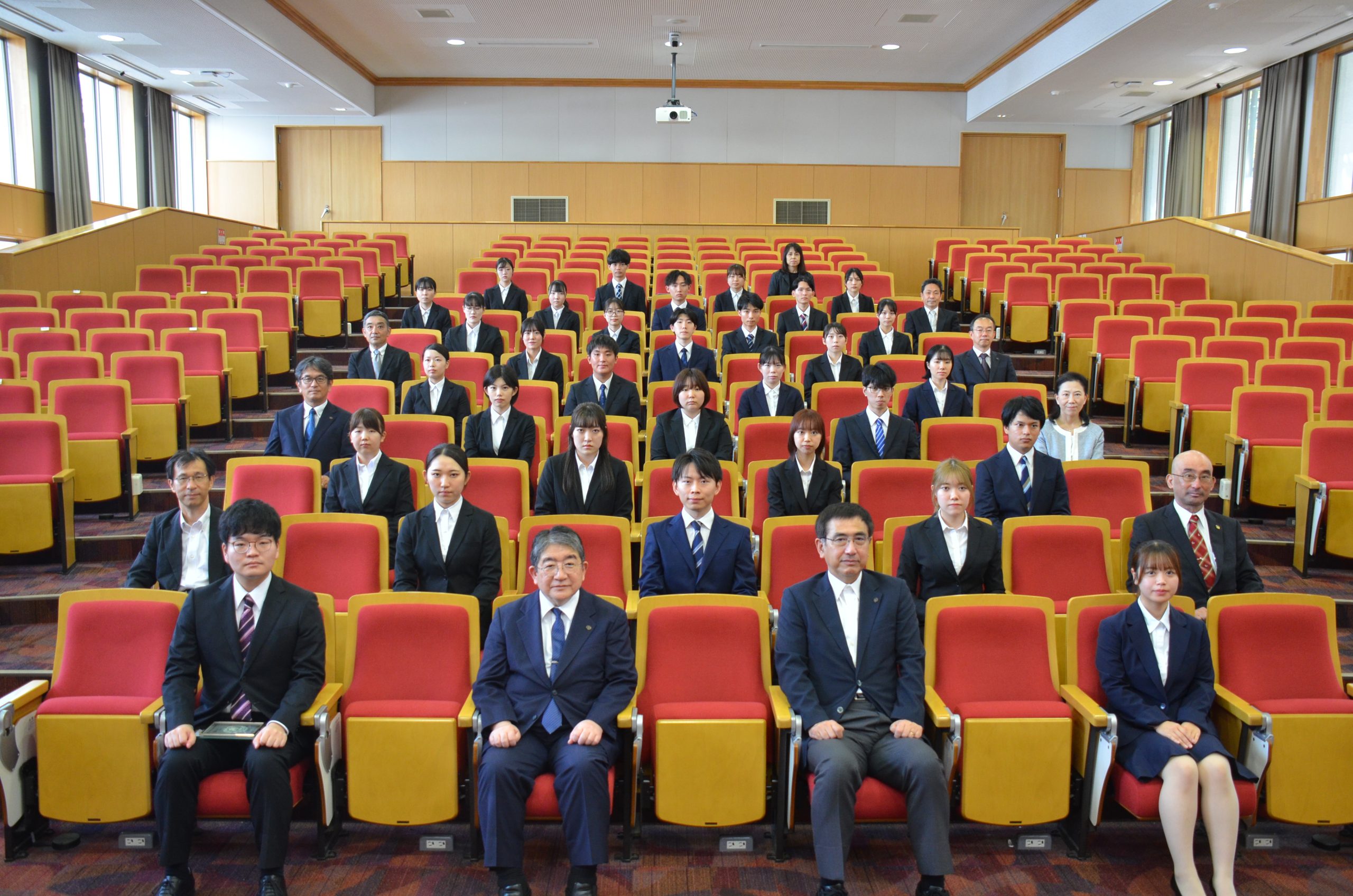 愛媛大学の学生表彰は、春季と秋季の2回行われ、成績優秀者並びに学術研究活動や課外活動等において特に優秀な成績や功績を残したと認められる学生及び団体を表彰するものです。今季は、成績優秀賞は33人、学長賞は個人5人と1団体が表彰されました。