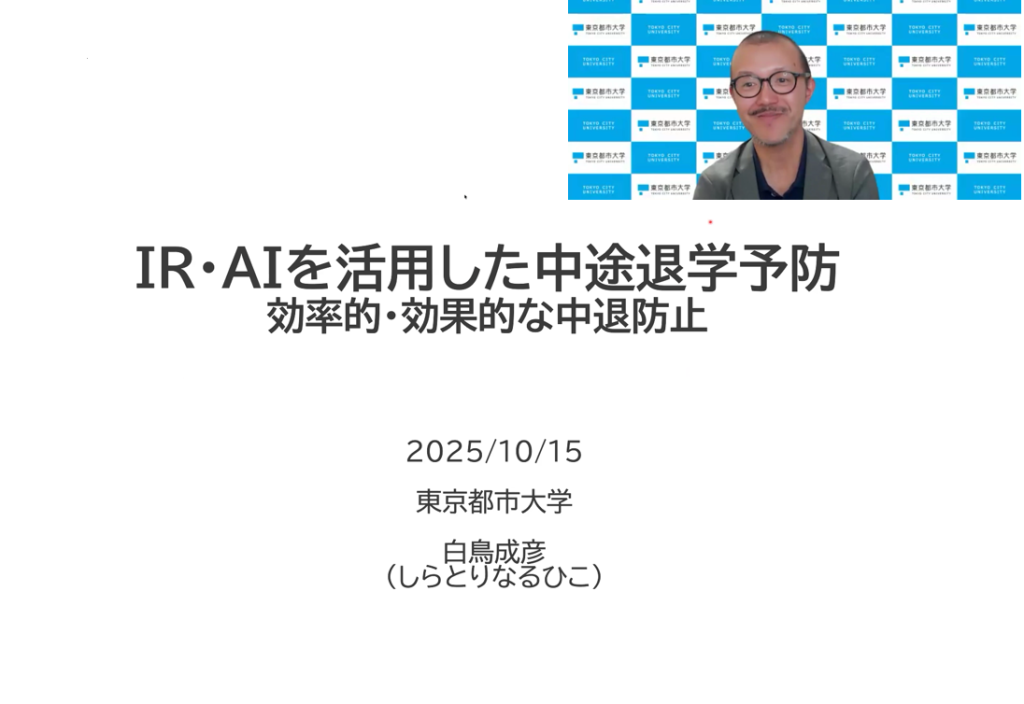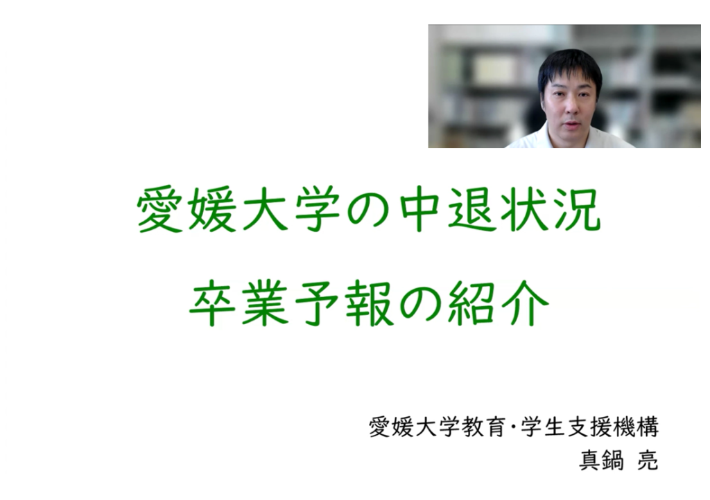 なお、白鳥氏の講演「IR・AIを活用した中途退学予防」は、Youtube「愛媛大学FD・SDチャンネル」で公開予定です。