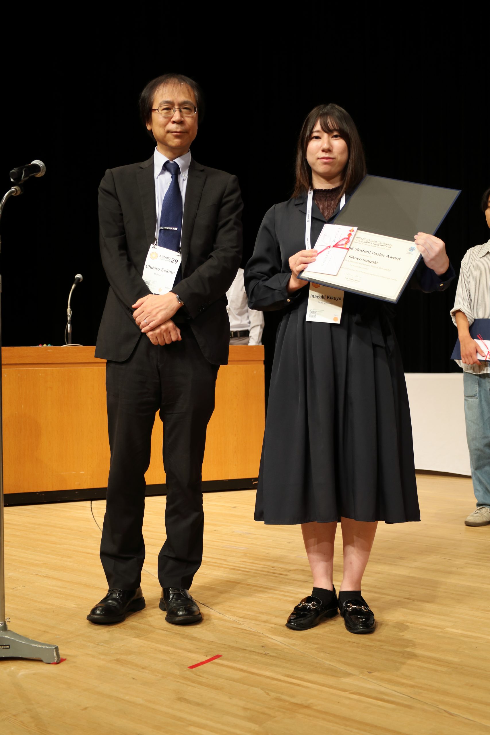 理工学研究科博士前期課程1年稲垣喜久代さん(GRC出倉研究室)が、第29回高圧力科学と技術に関する国際会議(AIRAPT-29)において、優れたポスター発表に授与される「HPCJ-66 Student Poster Award」を受賞しました。本賞は、全参加者のうち高圧力学会員による投票の下、特に優秀と認められた学生発表者5名に贈られるものです。稲垣さんは120分間の対面ポスター発表を通じて高い評価を受け、見事受賞を果たしました。