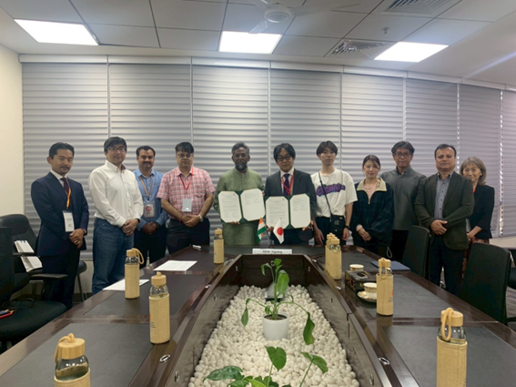 翌16日(日)には、これまで主に本学の社会共創学部が共同研究や学生の短期相互派遣を続けてきたIITハイデラバード校との間で、大学間の学術交流協定の締結を行いました。締結式では、両大学の代表から今後のさらなる学術及び学生交流の推進に向けた期待が示され、固い握手を交わしました。締結式には、IITハイデラバード校からBudaraju Srinivasa Murty学長のほか、Japan Cooperation CellのChandrasekhar Murapaka教授、片岡広太郎教授、IITH Japan Desk 上田大輔氏ら5人、本学からは隅田学長特別補佐のほか、社会共創学部からNetra Prakash Bandary教授、山中亮准教授、学生2人が出席しました。
