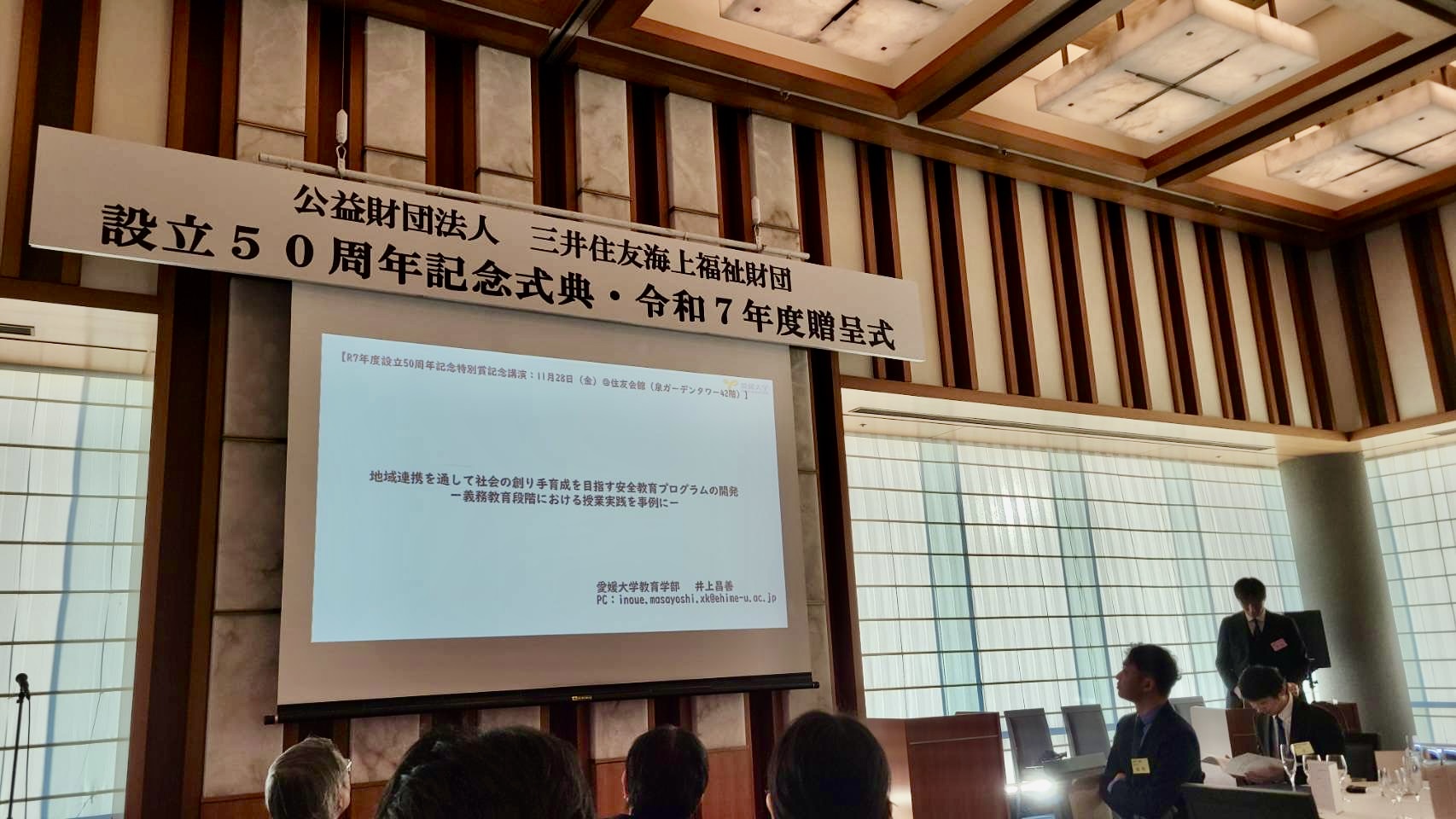 令和7年11月28日(金)に公益財団法人三井住友海上福祉財団設立50周年記念式典にて教育学部人文社会科学系社会科教育講座の井上昌善准教授が、公益財団法人三井住友海上福祉財団設立50周年記念特別賞を受賞しました。