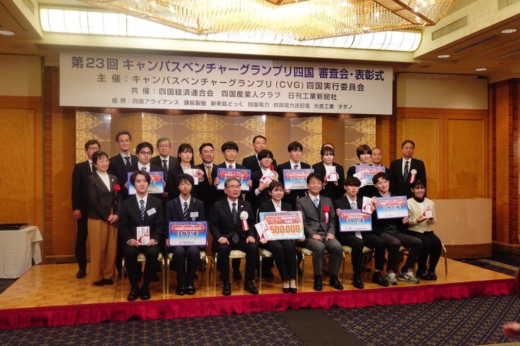令和7年12月10日(水)に、高松市内のホテルにて「第23回キャンパスベンチャーグランプリ四国(以下、CVG四国)最終審査会」が開催され、一次審査を通過した計8組の学生が、自身のビジネスアイデアについてのプレゼンテーションを行いました。