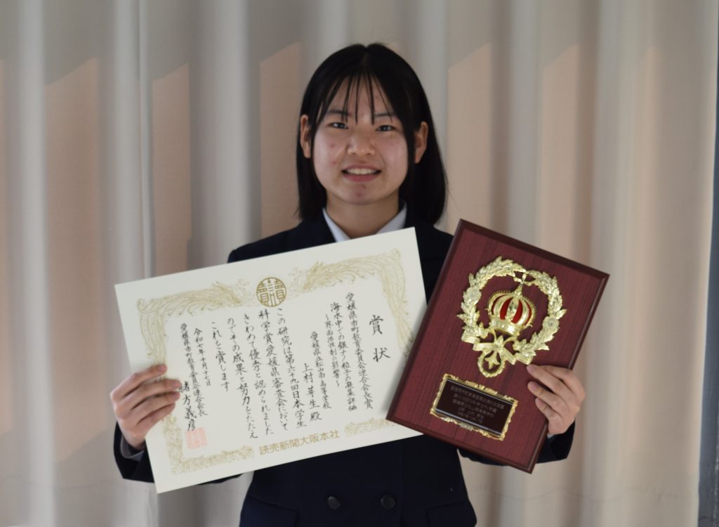理工学研究科(理学系)の座古保教授が研究指導している上村さんの研究は、令和7年10月17日(金)に行われた愛媛県審査会において、最優秀賞の一つである県市町教育委員会連合会長賞を受賞し、県代表として中央審査(全国)に進んでいましたが、この度、入選3等を受賞しました。