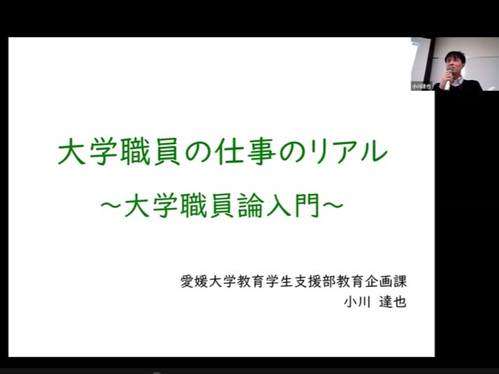 令和7年12月6日(土)、愛媛大学城北キャンパスにおいて、大学職員の仕事に関心がある大学生・大学院生を対象としたイベント「プレSD 大学職員のリアル~大学で働くという選択肢~」を初めて開催しました(主催:四国地区教職員能力開発拠点ネットワーク(SPOD)および教職員能力開発拠点(愛媛大学教育企画室))。プレSDは、大学職員の多様な業務内容や役割を学びながら、企画力やコミュニケーション力など、大学職員に求められる能力を育成することを目的とした学生向けプログラムです。