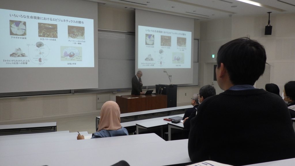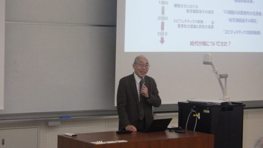 仲野先生にはご自身の卓越した研究成果であるエピジェネティクスに関するお話だけでなく、研究者としての人生の歩み方や退職後の研究との付き合い方を含めて、これから研究者として活躍が期待される若手の先生はじめ、定年退職の近い教授の先生方にも十分に心に刺さるオモロイお話をご講演いただきました。