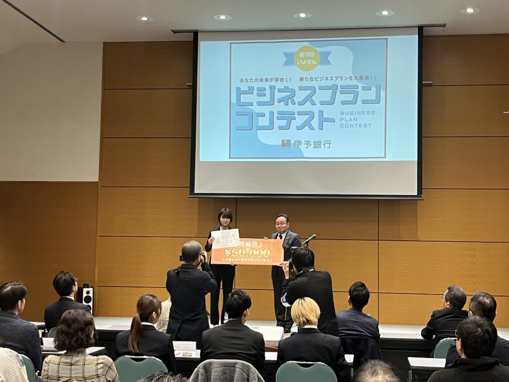 令和8年2月26日(木)に開催された「第10回いよぎんビジネスプランコンテスト」(主催:伊予銀行)において、愛媛大学農学部3年生で、えひめ学生起業塾生の中田歩実さんが奨励賞を受賞しました。