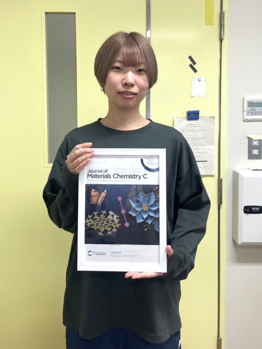 これは前年(2025年)から2026年1月現在までに、RSCの材料系の特に注目されている5つの雑誌(Journal of Materials Chemistry A, 同B, 同C, Materials Advances 及び Materials Horizons)に掲載された論文の中から、編集委員の推薦や審査意見、ダウンロード数など、客観的なインパクトを基に選ばれた論文の著者の中から選ばれました。大学院生、しかも博士前期課程の学生が選ばれることは異例で、愛媛大学の材料科学研究の可能性や強みを、女性が活躍している大学であるということと、ともに世界に向けて発信したことになります。