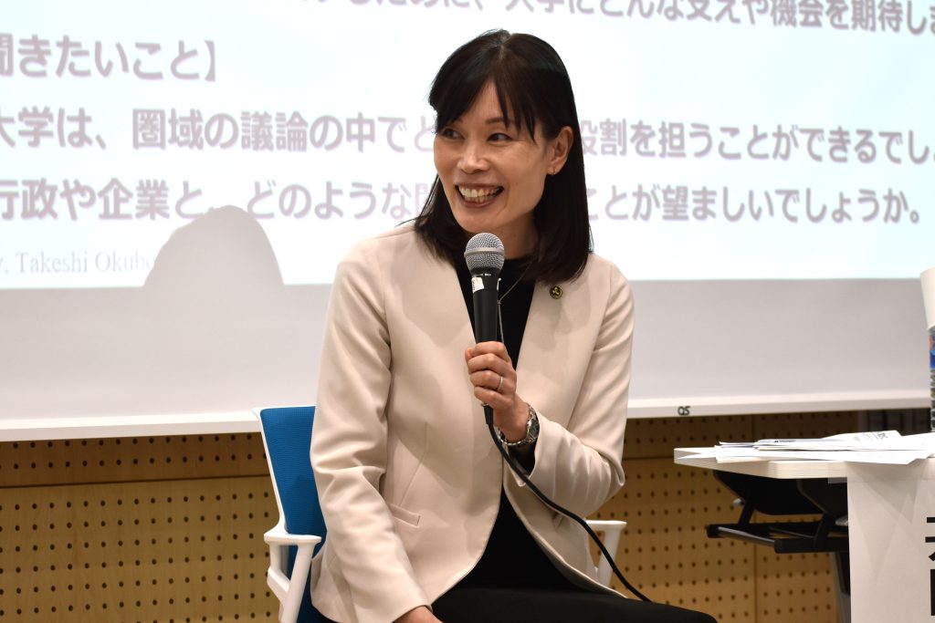 トークセッションのまとめとして、仁科学長は、学生や教員の発言を踏まえ、全世代に開かれた大学という考えが、制度や役割としてだけでなく、地域の中で若者からお年寄りまで世代や立場の異なる人々が関わり合う姿として具体的に見えてきたことに触れ、大学が地域の中で果たす役割の可能性について言及しました。また、児玉参事官からは、「まちへの愛」や地域への関わりが人材の定着につながることを踏まえ、大学が多様な視点を提供するシンクタンク的機能を担うことへの期待が述べられました。